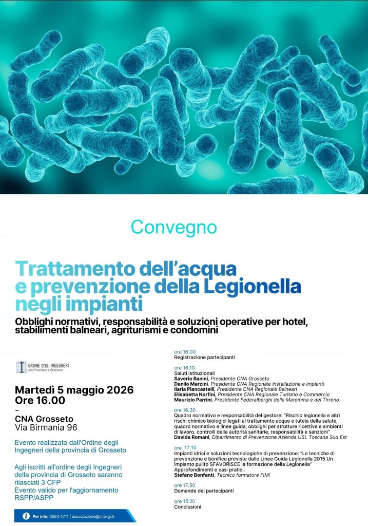 Trattamento dell’acqua e prevenzione della Legionella negli impianti – Convegno gratuito